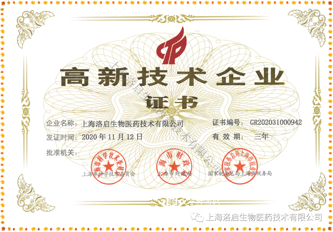 近期,上海维多利亚老品牌VIC生物医药技术有限公司取得了由上海市科学技术委员会、上海市财政局、国家税务总局上海市税务局联合颁发的“高新技术企业证书”。