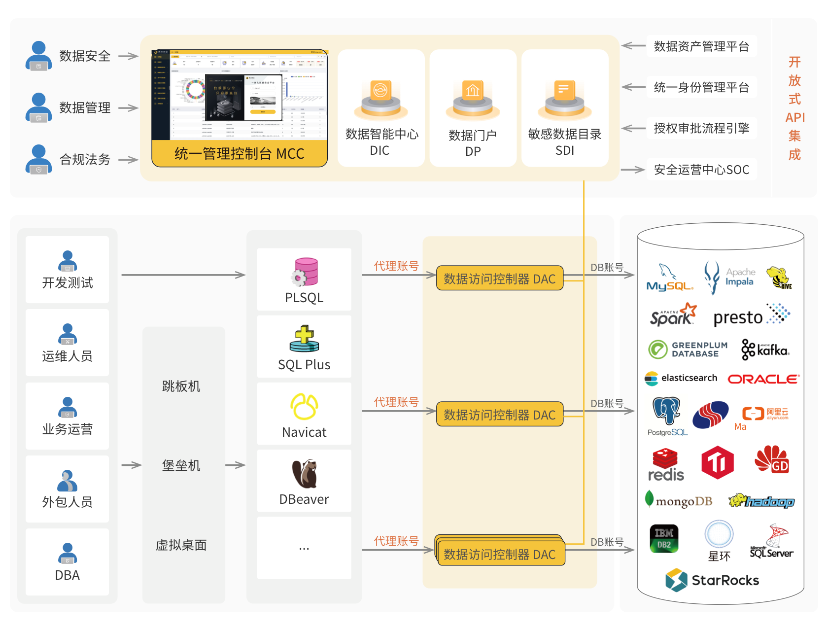 企业的研发测试人员、业务运营人员、数据库运维人员经常需要使用各种数据库工具直接访问企业的数据库,进行数据库运维、数据分析、故障定位等工作。很多企业还因为业务的需要,把数据库的访问权限开放给第三方外包人员。企业的数据库中可能存储着涉及知识产权的重要数据、涉及用户隐私的个人敏感信息,为保护这些敏感数据,企业需要加强研发运维人员、外包协作人员数据库访问行为的安全管控。